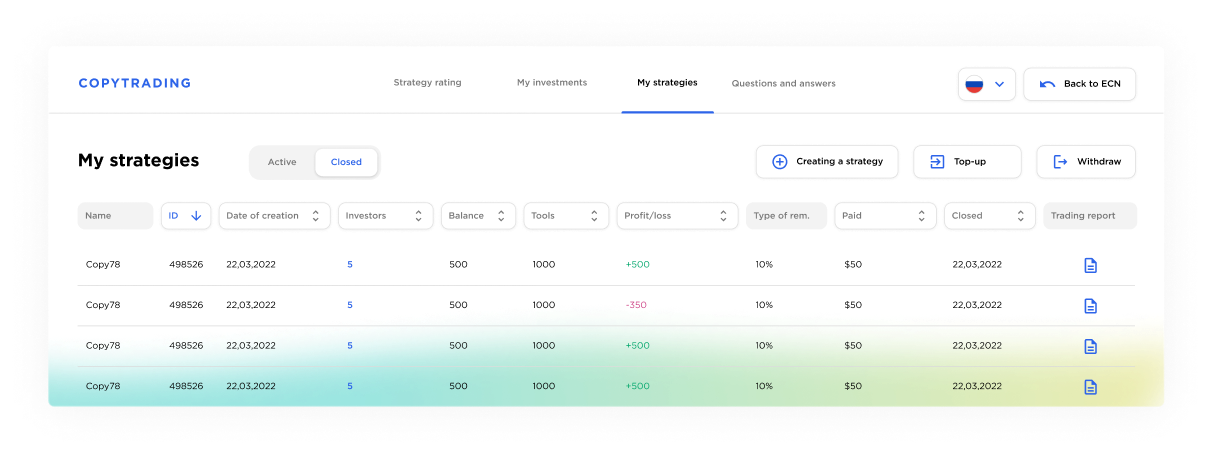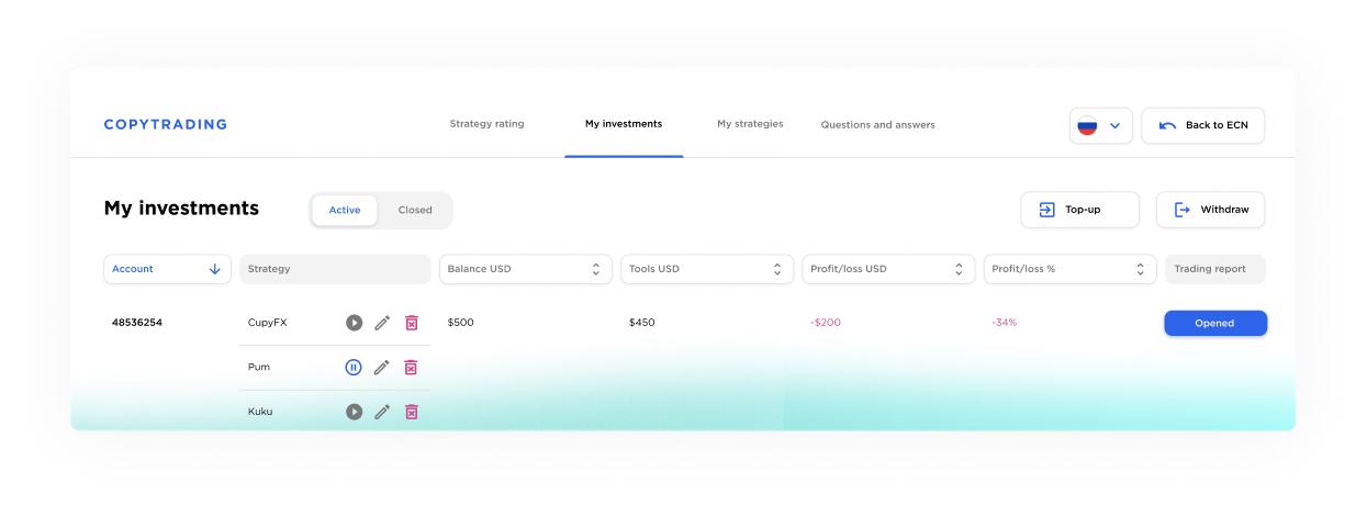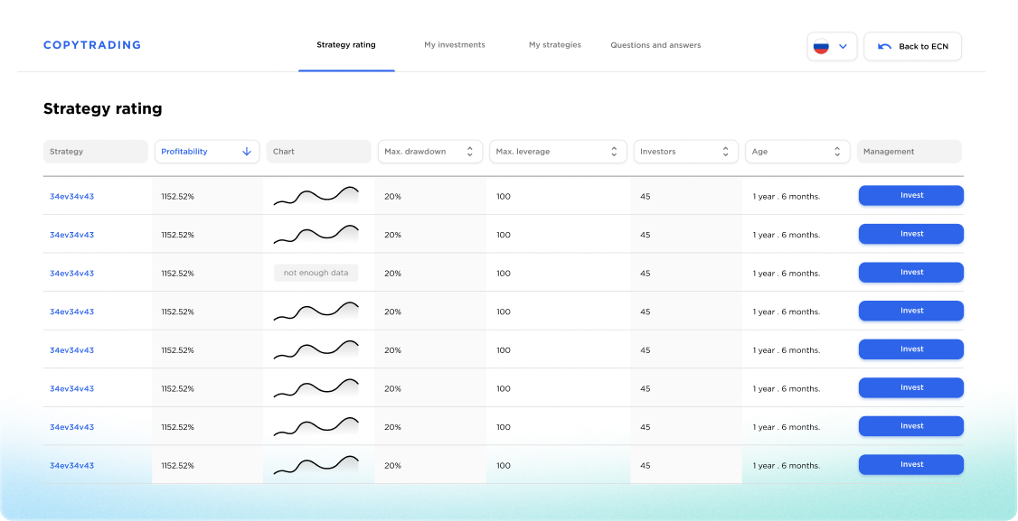 Brindamos interacción instantánea con proveedores de liquidez en cualquier parte del mundo directamente, y los traders toman sus propias decisiones clave o siguen estrategias exitosas probadas. Esto es ECN, un verdadero corredor.